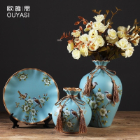 美式复古陶瓷花瓶盘子欧式客厅玄关酒柜装饰品摆件现代创意花插