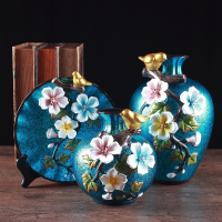 美式田园家具装饰品特色手工捏制花鸟花瓶客厅酒柜花插陶瓷摆件