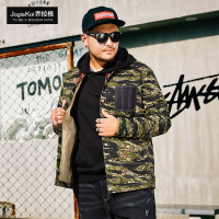 乔拉格加肥加大码男装迷彩夹克牛仔外套潮牌胖子肥佬秋冬新款方领迷彩