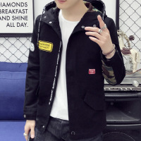 日系潮牌男装青年男式夹克修身水洗中长款夹克外套男时尚连帽上衣
