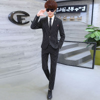 条纹小西装男套装英伦风修身一套西服结婚礼服时尚两件套潮牌男装