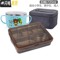 三维工匠韩国304不锈钢五格餐盘学生饭盒儿童便当盒食堂分格保温便携带盖 五格棕透1720+碗+袋