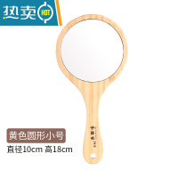 敬平美容院专用化妆镜圆形手拿木质小镜子绣纹镜便携高清手柄镜女 黄色圆形小号镜子便携式用镜