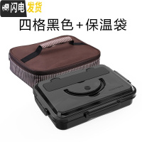 三维工匠 304不锈钢饭盒便携带盖分格便当盒成人学生女韩国餐盒 4格黑色心情+保温袋