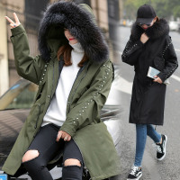 2017新款潮 牌铆钉款宽松大毛领中长款连帽工装冬季羽绒服女韩版