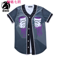 锦铭七玥男装2018新品欧美时尚3D印花男士短袖棒球衫上衣男开衫