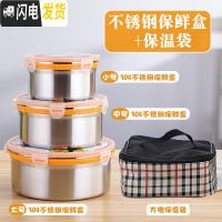 三维工匠304不锈钢保鲜盒多用圆形三件套装汤盒泡面碗带盖密封饭盒 单个2700+袋子/适合2-3人