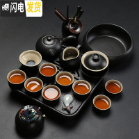 三维工匠茶具套装家用简约办公客厅茶壶茶杯盖碗泡茶陶瓷整套功夫茶具 侧把茶组17头+乌金石茶盘