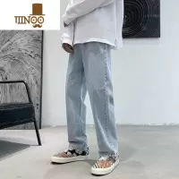 YANXUins港风直筒牛仔裤男夏季薄款宽松潮流九分裤男士阔腿休闲长裤子