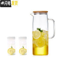 三维工匠耐热防爆玻璃水壶ins风大容量家用冷水壶果汁壶凉水壶凉水杯套餐 竹盖水壶1.5