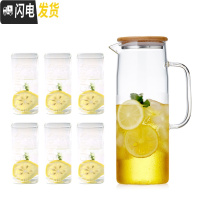 三维工匠耐热防爆玻璃水壶ins风大容量家用冷水壶果汁壶凉水壶凉水杯套餐 竹盖水壶1.5+6水杯