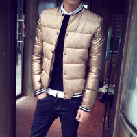 2017新款男士大码冬情侣装土豪金韩版棉衣无领亮面棉服男棉衣时尚百搭潮流男装