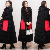 加厚中国民族风长款过膝棉衣女装复古盘扣连帽女式棉衣棉服冬季金