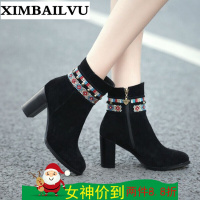 韩版2017秋冬新款粗跟短靴女靴子防水台圆头高跟鞋踝靴裸靴骑士靴
