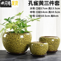 三维工匠花盆陶瓷大号特大家用带托盘创意肉肉绿萝吊兰多肉小花盆 苹果孔雀黄三件套 大花盆容器