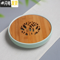 三维工匠家用陶瓷茶盘大号手绘荷花茶台圆形双层储水式茶托干泡托盘 青圆竹盘(单盘)长25*25*5.5茶具