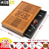 三维工匠竹茶盘储水式家用简约茶托盘 排水小号功夫茶海茶台办公竹茶制盘 福气连连(长53*32.5*高5cm)茶具
