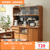 全友家居樱桃木实木餐边柜客厅2024新款带玻璃门储物收纳柜