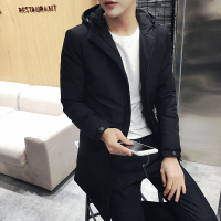 新款男士冬装时尚保暖男士羽绒服加厚纯色羽绒服男外套黑色