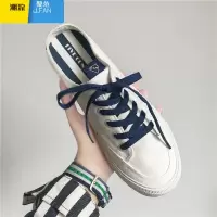 聚范夏季半拖帆布鞋男女情侣白色薄款懒人鞋子潮鞋托无后跟一脚蹬男鞋
