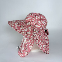 夏季大檐遮阳帽女碎花防晒采茶帽防紫外线户外干活一体遮脸太阳帽