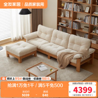 全友家居2024年新款原木风云朵沙发客厅直排红橡木布艺沙发