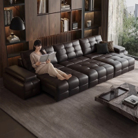 科朔头层牛皮沙发现代简约直排电动沙发工厂展厅实拍真皮沙发Y9913
