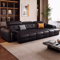 全友家居头层牛皮沙发复古风轻奢客厅直排黑色模块真皮沙发