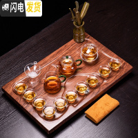 三维工匠功夫茶具玻璃茶杯套装整套简约透明茶壶实木茶盘茶海茶台茶道家用 玻璃盖碗原木套装