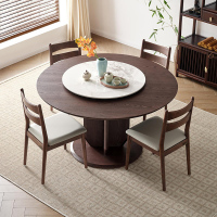 实木花大圆餐桌客厅家用饭桌储物大户型家具中式古典餐桌椅组合