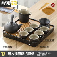 三维工匠现代简约茶盘家用竹制储排水日式托盘大小号茶台功夫茶具套装 17黑陶侧把10头+正方流雨-黑