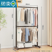 敬平双层晾衣架落地卧室内家用挂衣架不占空间晒衣架收纳简易衣帽架子 [双层款]加粗加高80cm-酷黑 大