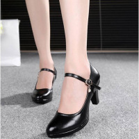 SUNTEK真软皮妈妈舞蹈模特旗袍防水台单鞋一字扣走秀工作高跟鞋女士皮鞋
