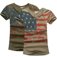 户外军迷服装水兵舞夏装新款迷彩服情侣短袖军绿色v领T恤女