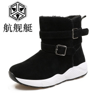 内增高短靴女2017秋冬新款韩版百搭加绒棉鞋英伦风平底厚底雪地靴