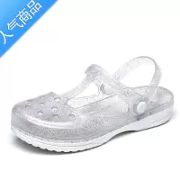 SUNTEK夏季水晶凉鞋女平底时尚百搭沙滩洞洞鞋防滑镂空包头鞋时尚妈妈鞋