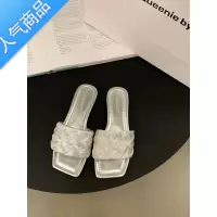 SUNTEK平底法式晚风一字凉拖鞋仙女鞋子外穿2023年新款夏季气质编织凉鞋