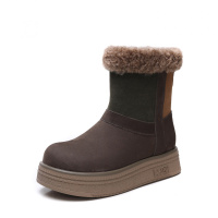 真皮松糕厚底短靴女秋冬羊毛靴年新款冬季加绒保暖复古雪地靴