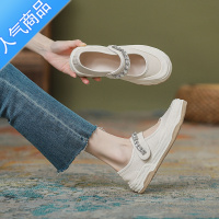 SUNTEK底玛丽珍鞋女夏季水钻一字带魔术贴内增高单鞋厚底半拖帆布鞋