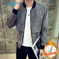 冬季韩版外套男士印花加绒店主风夹克上衣大码外衣运动棒球服潮流