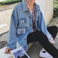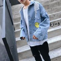 牛仔外套男韩版潮流2017新款秋季刺绣宽松学生帅气bf风牛仔衣破洞