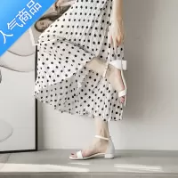 SUNTEK2023夏季新款韩版一字扣带中跟粗跟低跟凉鞋女学生白色高跟鞋