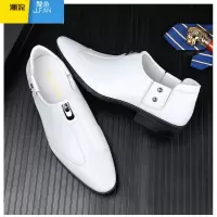 聚范头层男士商务正装皮鞋男鞋青年尖头德比鞋男鞋英伦鞋子男白色