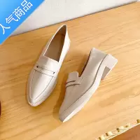 SUNTEK白色乐福鞋女英伦风平底2023新款尖头小皮鞋春秋厚底上班夏季单鞋