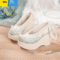 SUNTEK原创高跟汉服鞋子女古风增高冬季坡跟绣花鞋女内增高民族风鞋古装