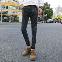 UYUK2017冬季雪花水洗加绒牛仔裤潮男加厚保暖休闲牛仔长裤深灰色