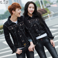 丹杰仕 2016新款男女情侣套装 韩版修身牛仔裤 牛仔夹克 深灰色套装男 小咖秀百搭潮