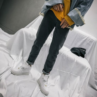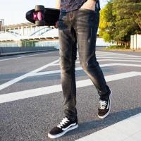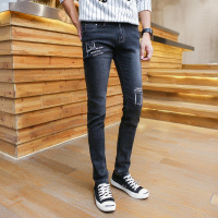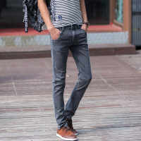 2017秋季新款男式青年韩版休闲时尚修身潮流小脚牛仔裤深灰色