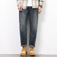 男士牛仔长裤春秋季美式复古宽松直筒潮男百搭阔腿老爹裤_378