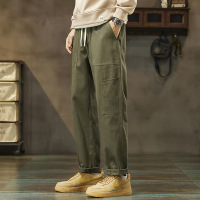 2026春夏军绿工装裤男抽绳锥形长裤多口袋拼接舒适日系通勤裤